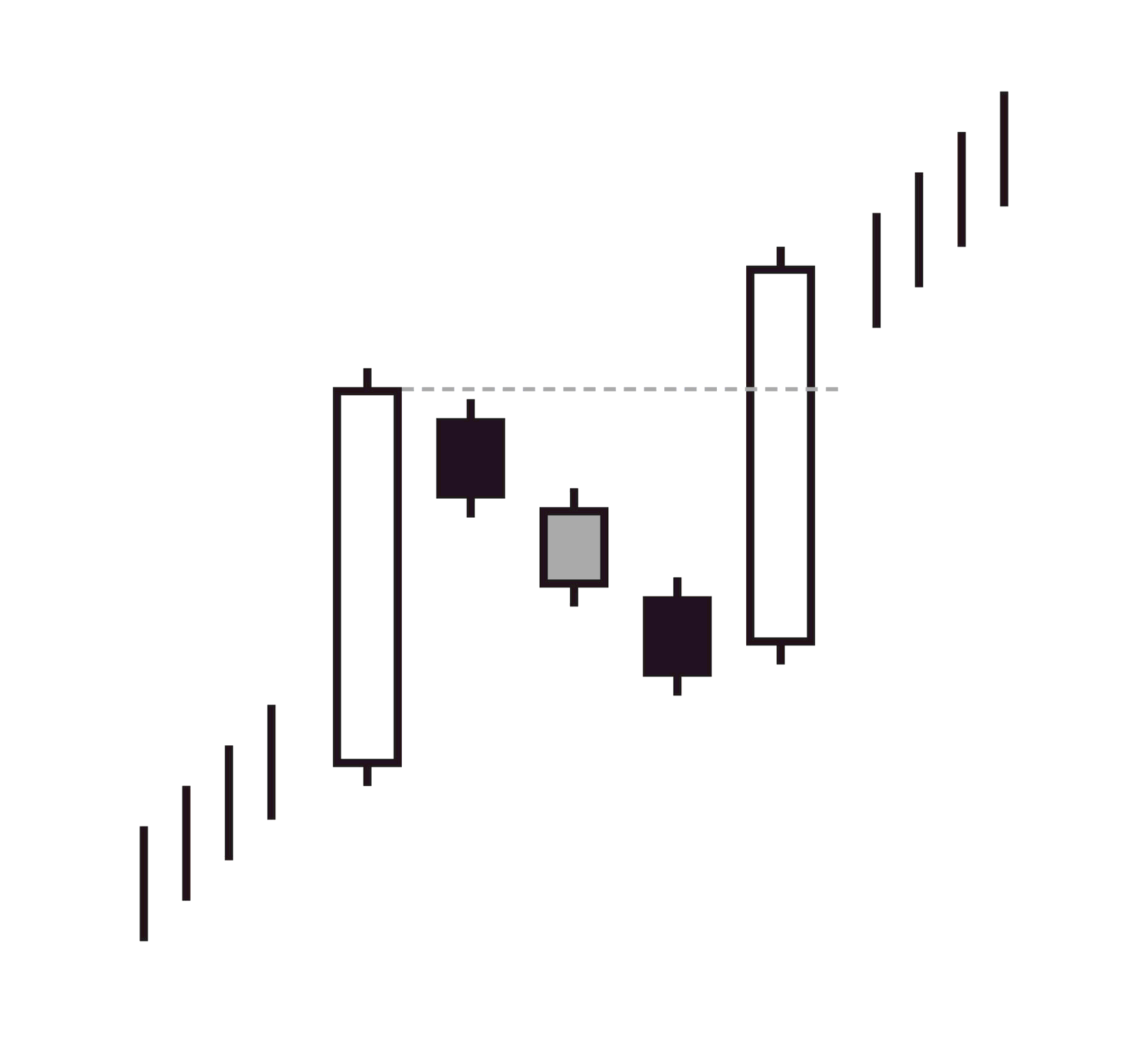 Ее появление на графике сигнализирует о том, что актив торгуется в одном направлении и тренд продолжается.