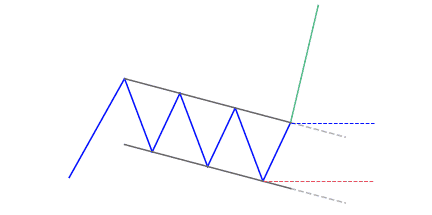 Бычий флаг — классическая модель продолжения восходящего тренда. Особенность паттерна заключается в непродолжительной нисходящей консолидации, после которой инструмент показывает активный рост.