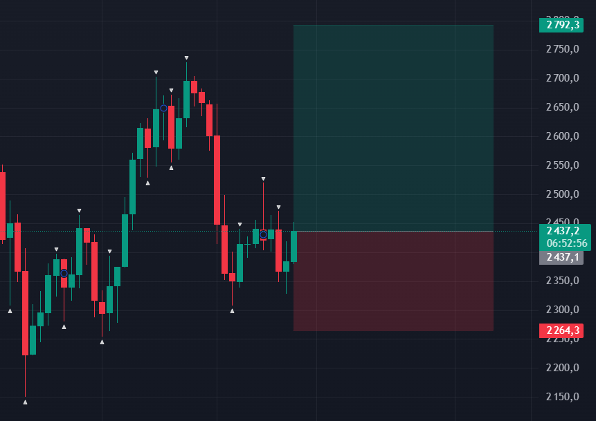 Например, вы решил купит ETH и хотите зафиксировать свой потенциальный убыток ордером. В таком случае, скажем, вы выставляете стоп-лосс на уровень 2264$. Таким образом, при достижение заданной цены все ваши купленные активы будут распроданы по рыночной цене.
