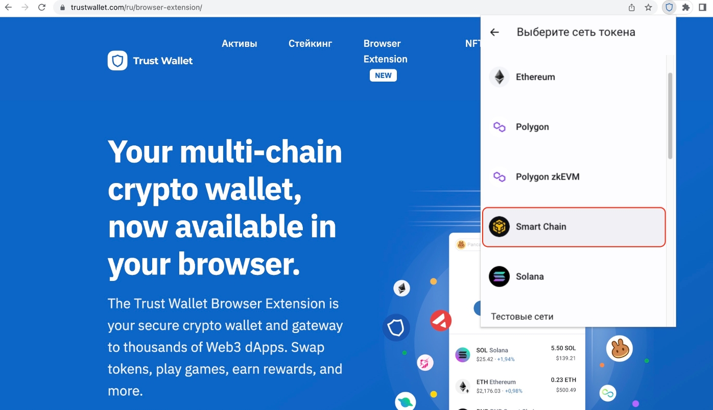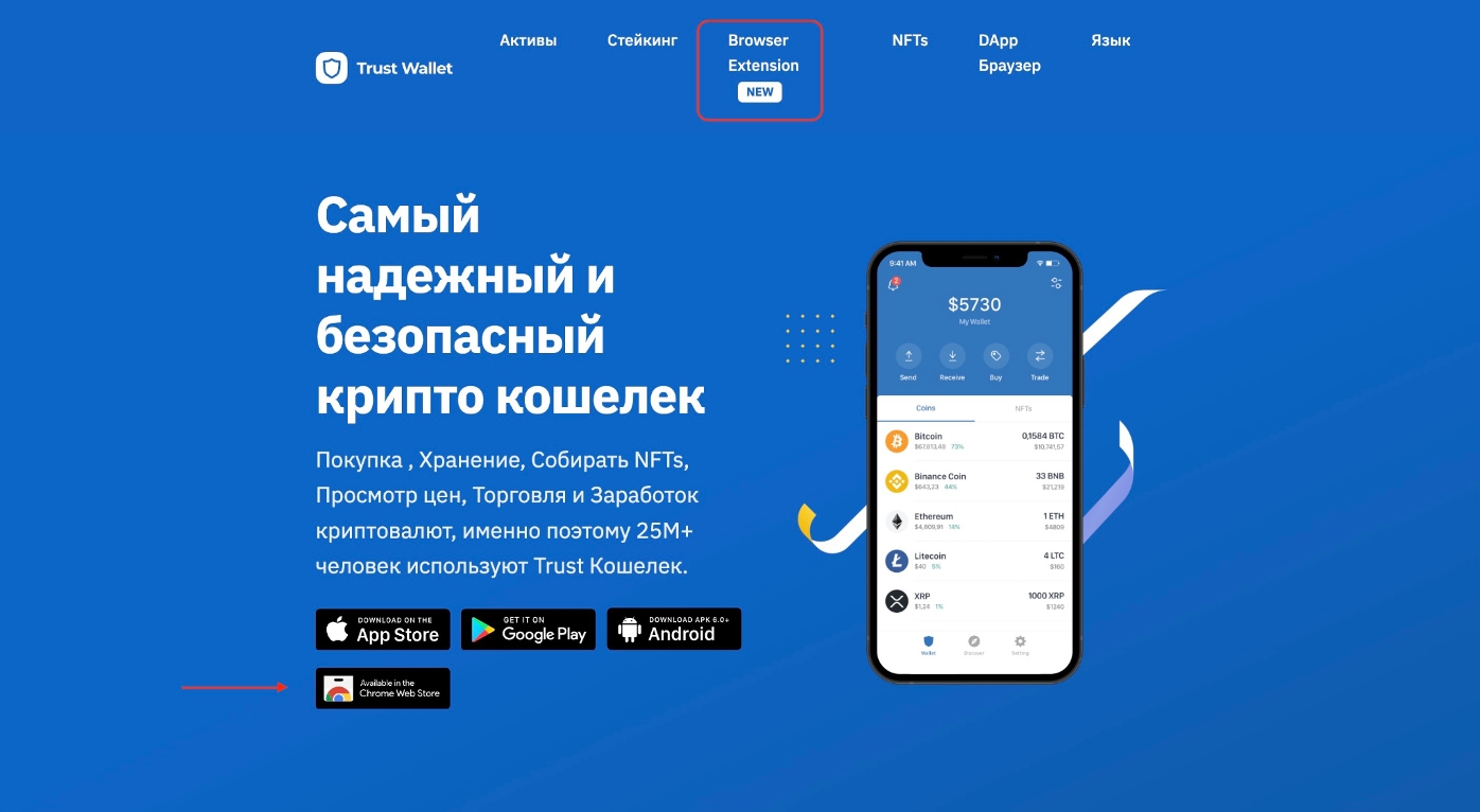 Установите браузерную версию кошелька по ссылке с официального сайта Trust Wallet