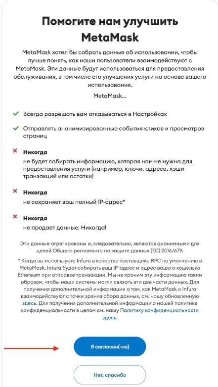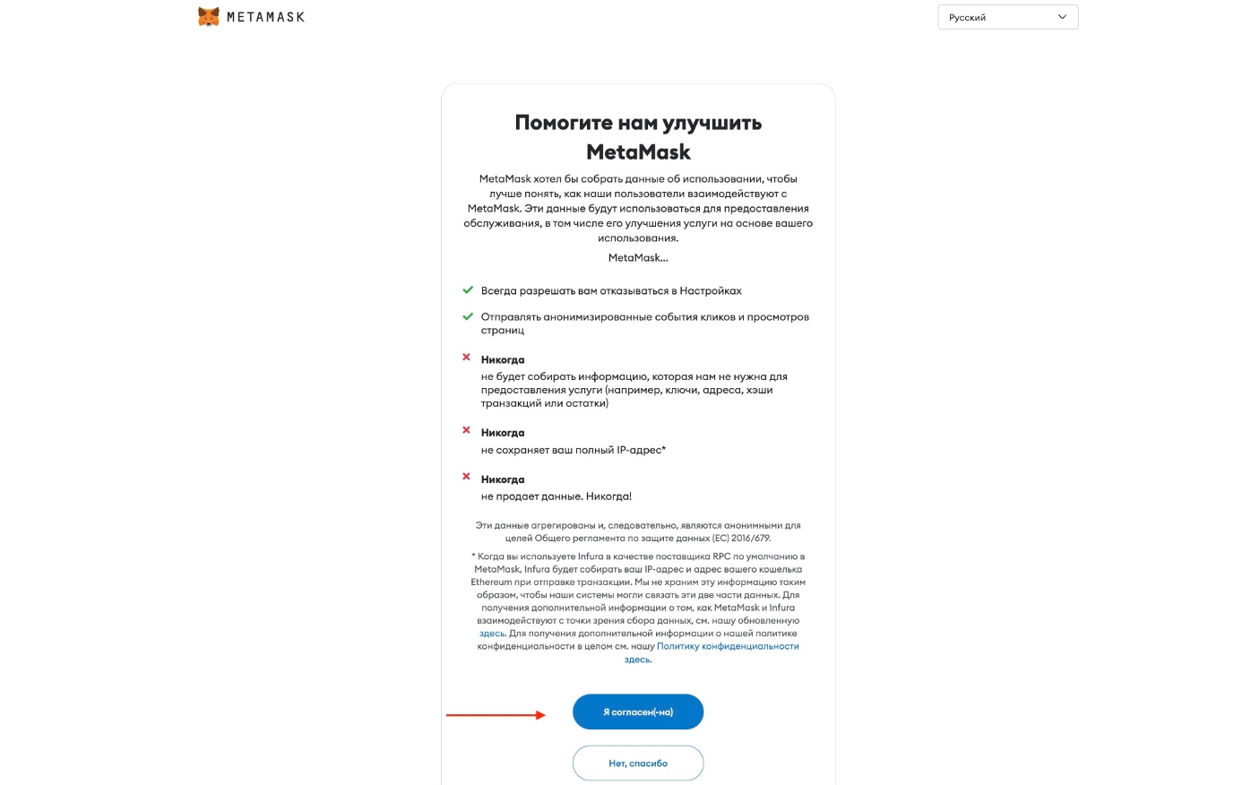 Ознакомьтесь с информацией сейчас или вернитесь к ней позже, для этого нажмите “No thanks”.