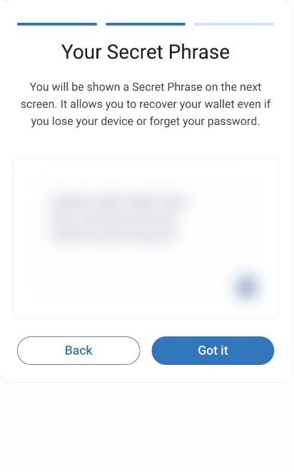 Нажмите “Got it”, чтобы увидеть секретную фразу от кошелька.